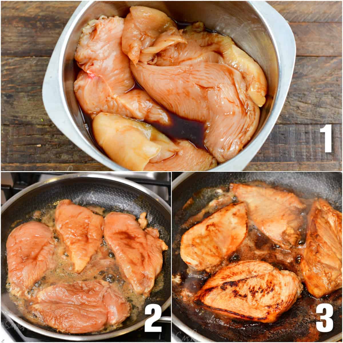 • Marinade the chicken breasts in balsamic vinegar for about 10 minutes before cooking. Season with some salt and cook until done.