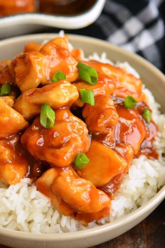 bourbon chicken in a bowl
