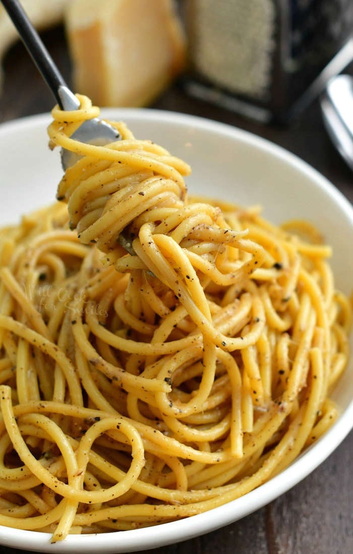 - Pasta – the best choice for this dish is bucatini pasta. It’s thicker than spaghetti and has rough surface, which is perfect for the cheese sauce to stick to evenly. You can also use artisan linguine, it usually has a rough surface. If you’re not having any luck with either, go with the simple spaghetti.
