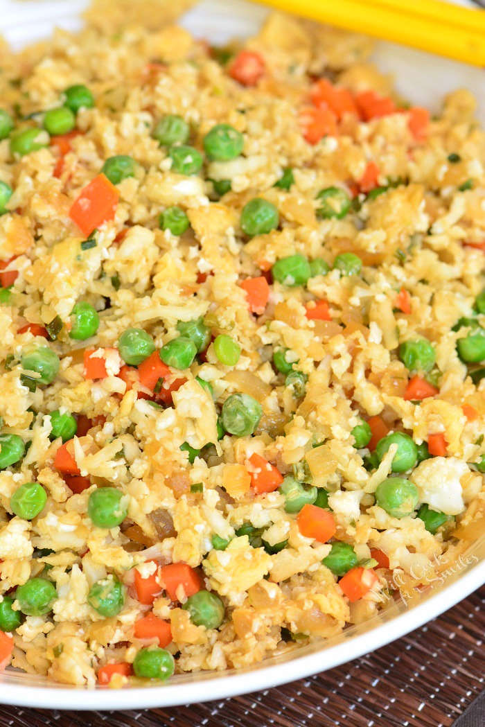 Cauliflower Fried Rice is made with all the classic fried rice ingredients like onions, carrots, peas, garlic, eggs, and soy sauce. Substituting cauliflower rice instead of rice is a great low-carb alternative. No food processor is needed for my recipes and it is easily made in about 20 minutes.