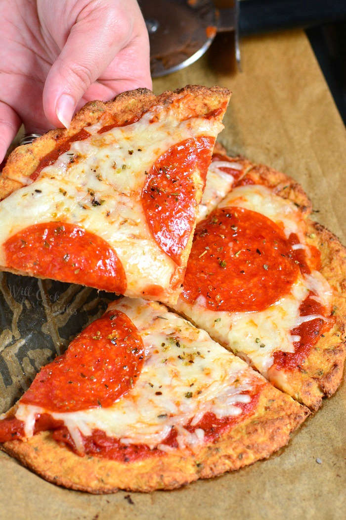 You can make several cauliflower pizza crusts at one time and and freeze them. This will make it easy to grab and make cauliflower pizza during the week.