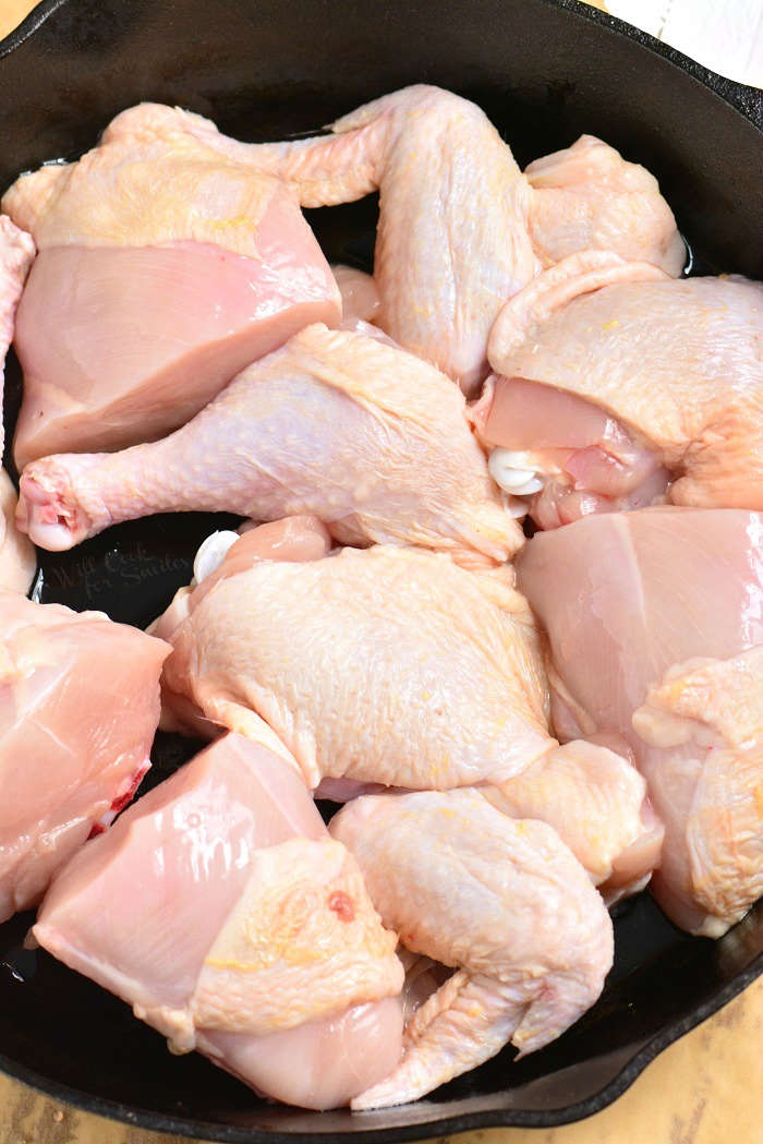 - Break down the whole chicken into 10 pieces - 4 quarters of breasts, 2 drums, 2 thighs, and 2 wings. (Directions to break down the chicken are in the post and on the printable recipe card below.)