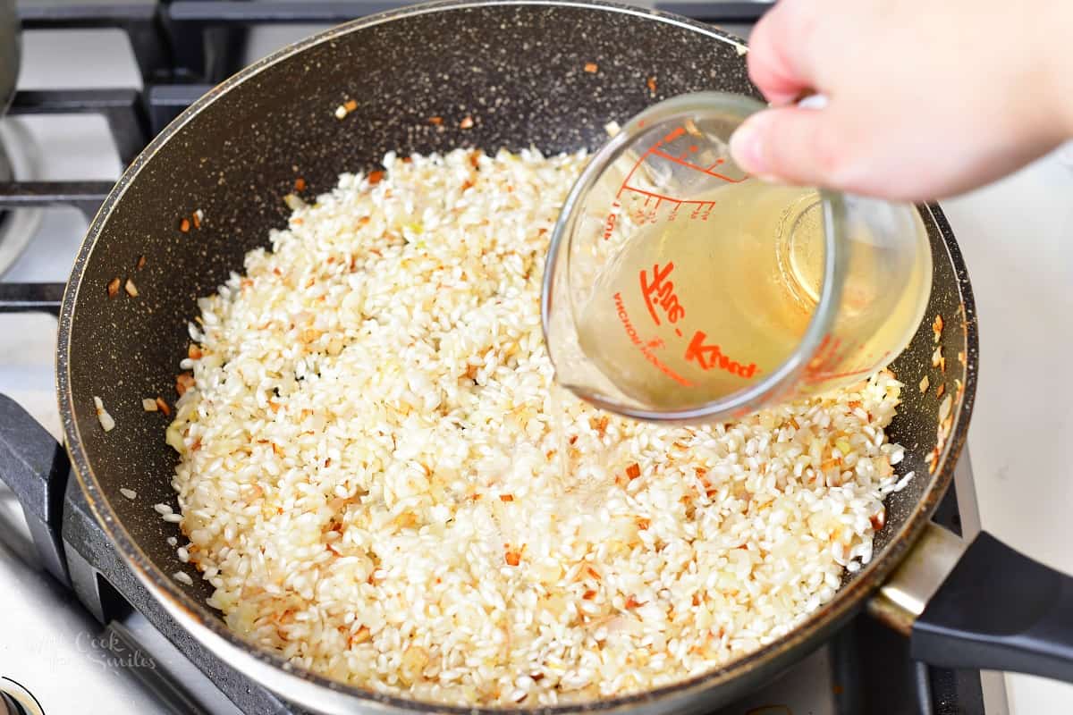 - White Wine – To avoid sweetness in this risotto, use a dry white wine like Chardonnay as opposed to something sweeter.