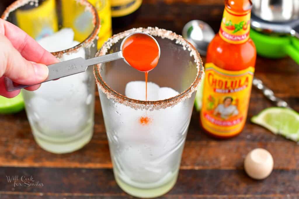 This is not a spicy recipe, in my opinion! The hot sauce adds a very light note of spice, but it’s complimentary to the other flavors. With that being said, you can make this drink more or less spicy if you’d like by increasing or decreasing the amount of hot sauce you add. Additionally, a pinch of cayenne pepper powder to the rim or into the cocktail is always a great way to heat things up.