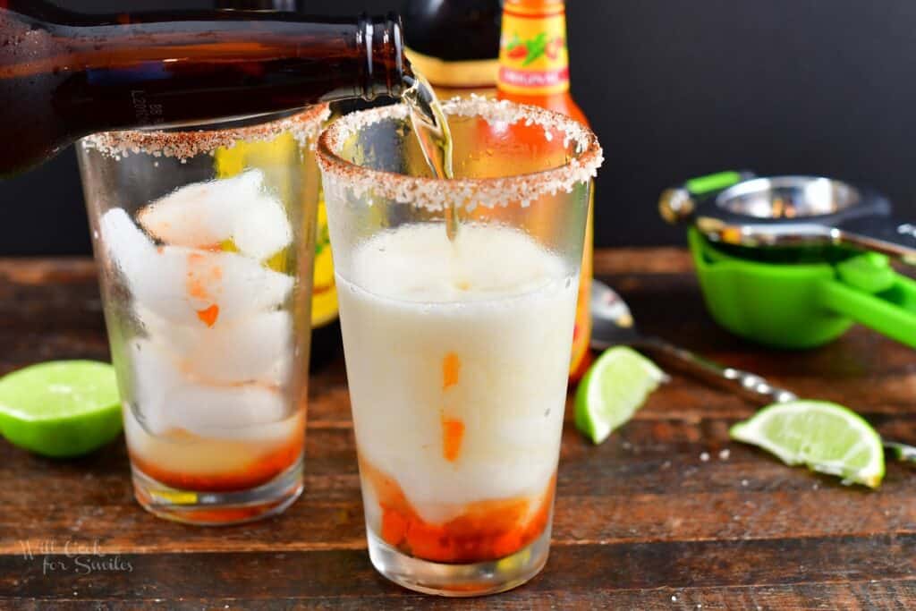 This recipe enhances your favorite Mexican beer with flavors of citrus, spices, hot sauce, and Worcestershire sauce. All of those potent ingredients mix together with the beer to create an overall flavor that is complex, as it’s both refreshing and savory.