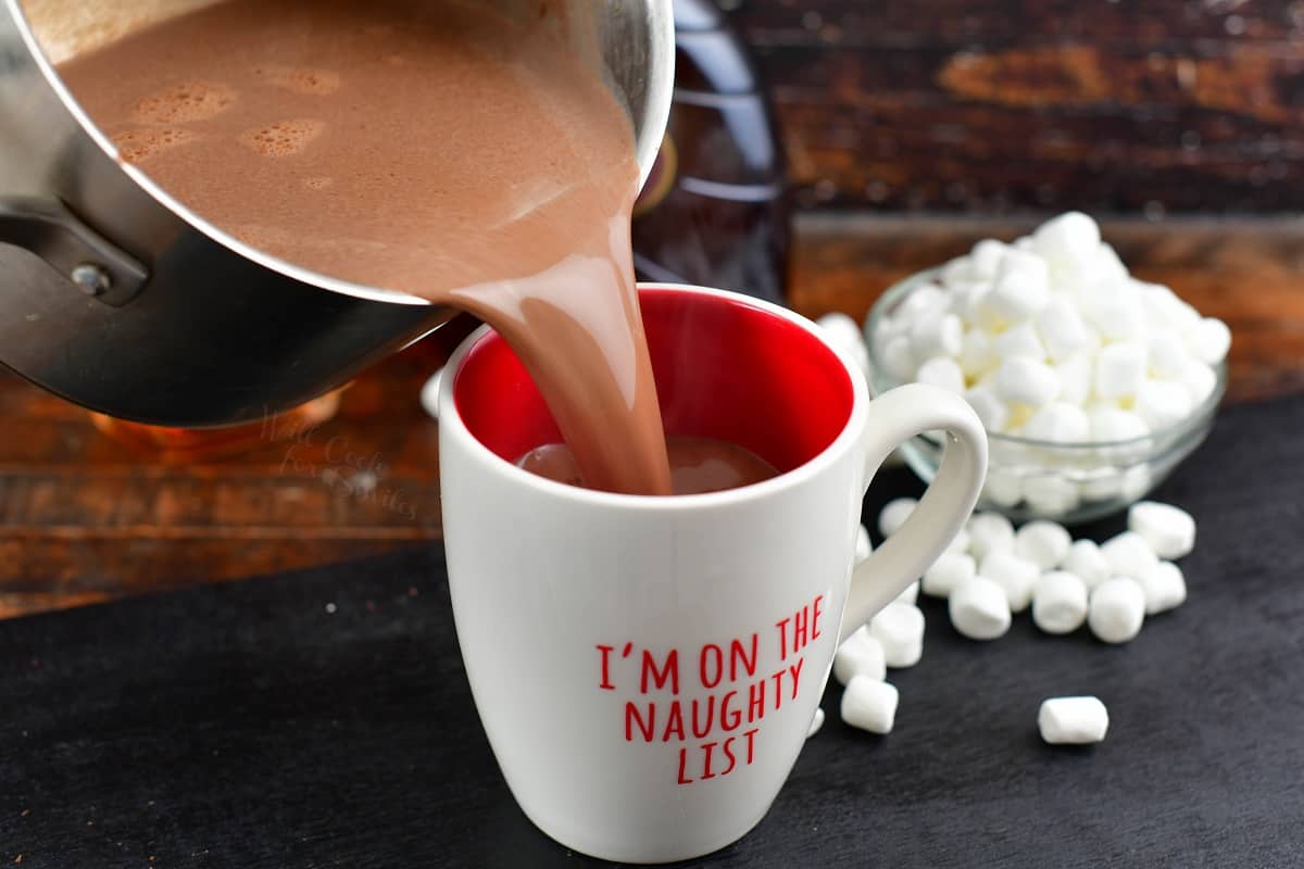 To reheat hot chocolate, transfer it into a small sauce pot and heat through over medium-low heat, just until hot. Make sure to reheat it slowly and don’t let it boil!