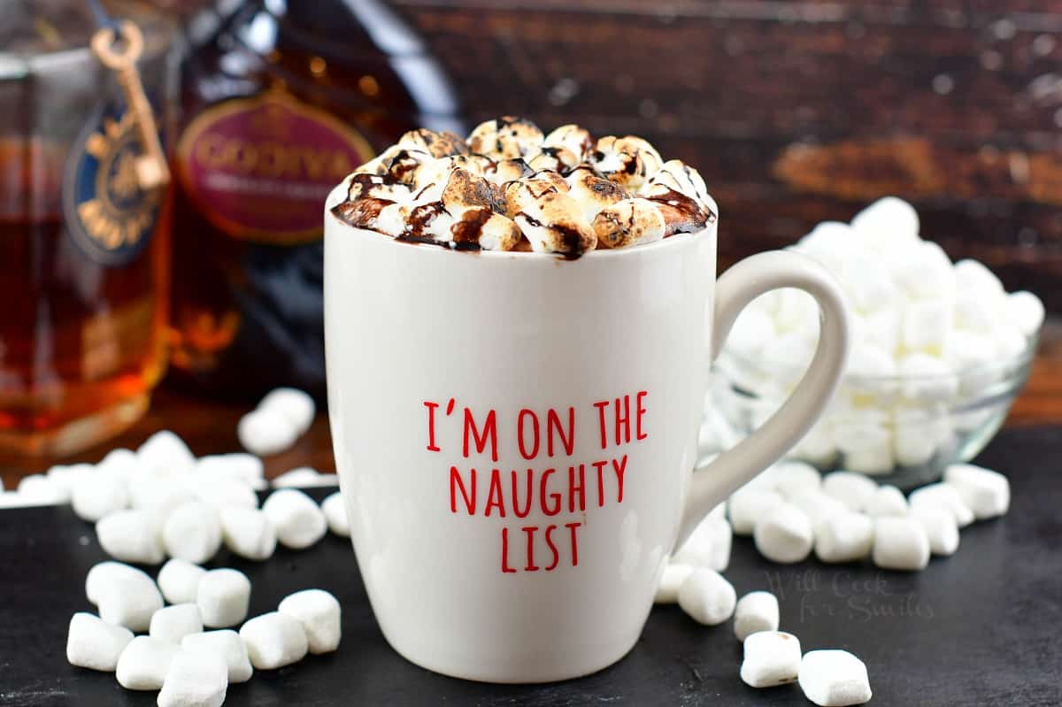 Kids have all the fun during the holiday season. Well, I think adults should have just as much fun, and what can be more fun than spiked hot chocolate?! Each sip is full of luxuriously rich and creamy hot chocolate with Godiva chocolate liqueur and bourbon to keep your adult self merry and bright. It’s a more indulgent cocktail than what you may be used to, but it’s the holiday season, so why not treat yourself?