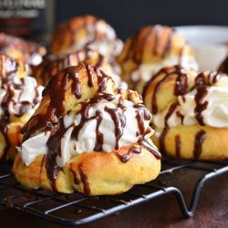 **Note: I recommend preparing whipped cream and chocolate sauce while pastries are cooling so that sauce is cooled.**