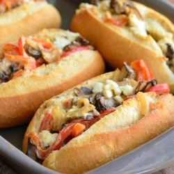 Saute sliced onion and peppers until starts to soften and add sliced mushrooms. Add salt and pepper to taste and cook, stirring occasionally, until fully cooked. Take off heat.
