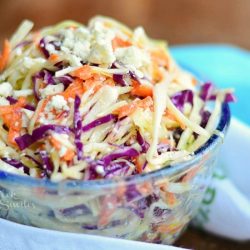 This Blue Cheese Coleslaw is absolutely delicious, made with vinegar dressing and blue cheese crumbles.