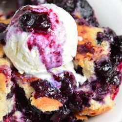 Blueberry Cobbler is a fruity, warm, and comforting dessert! Blueberries are dressed up with sugar and lemon zest and are topped with a soft and sweet cakey topping.