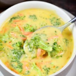This classic, creamy, Broccoli Cheese Soup is the ultimate comfort food that's deliciously packed with fresh broccoli and other vegetables. This cheesy soup is fast and easy to prepare and full of flavor from sharp cheddar cheese and seasoning.