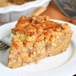 Spread apple pie filling in the cookie crust. Press it down gently.