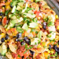 These Chorizo Nachos are made with spicy chorizo sausage and a combination of corn, beans, jalapenos and tomatoes.