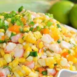 Cut corn kernels off the cobs and add corn to the mixing bowl.