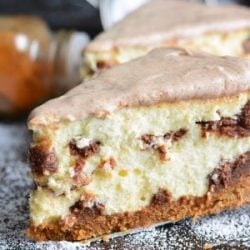 Spread more bits of cinnamon filling over the cheesecake filling, evenly.