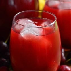 Add all cherries and juice into the pitcher with lemon juice.