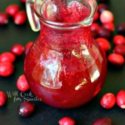Strain the cranberries through a fine strainer but don't mash the berries too much or the syrup will be too thick. (If your mixture does turn out a little too thick, add another 1/2 cup of cranberry juice and heat through.)