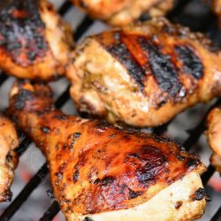 Close the lid and cook for about 5-6 minutes. Open the lid and use metal tongs to flip the chicken quarter of the way. Close the lid and cook for another 5-6 minutes. If it’s browning too fast, turn it more frequently. Repeat until chicken is cooked all around. (Depending on the size of the drumsticks, it will take 30-35 minutes.)