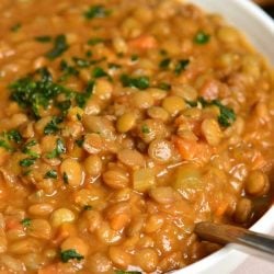 Lentil Soup is so cozy and hearty soup perfect for cooler season. This lentil soup is made with an effortless homemade bone stock that you can make a day ahead. To make the soup, simply cook lentils and vegetables in the bone stock with a few simple seasonings.