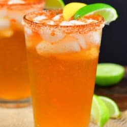 It’s a great, refreshing Mexican cocktail that combines light and crisp Mexican beer with bold, mouthwatering ingredients like hot sauce, Worcestershire sauce, spiced salt, and freshly squeezed lime juice.