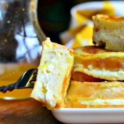 Orange Creamsicle French Toast is a beautiful breakfast of French toast stuffed with orange kissed cream cheese and topped with warm orange maple syrup!