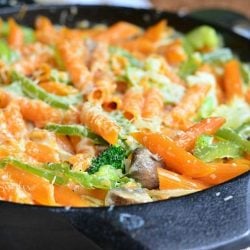 Pasta Primavera is loaded with different vegetables, tossed in smooth creamy sauce and make in a cast iron skillet!