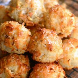 Sprinkle each coconut macaroon ball with a little bit of sea salt on top.
