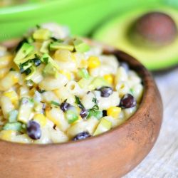 Add corn, beans and minced jalapeno to pasta.