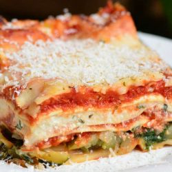 This Vegetable Lasagna is the most comforting vegetarian dinner you will ever try. It is made with layers of mixed vegetables, ricotta cheese, marinara sauce, lasagna noodles, and even more cheese. The combination of onions, zucchini, mushrooms, and spinach is perfect in a lasagna and goes so well with cheeses and simple marinara sauce.