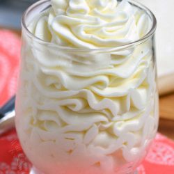 Slowly pour in heavy whipping cream while it's mixing. Slowly pour in sugar after heavy whipping cream. Continue beating until frosting is whipped into stiff peaks and waves. (It won't take long so don't walk away.)
